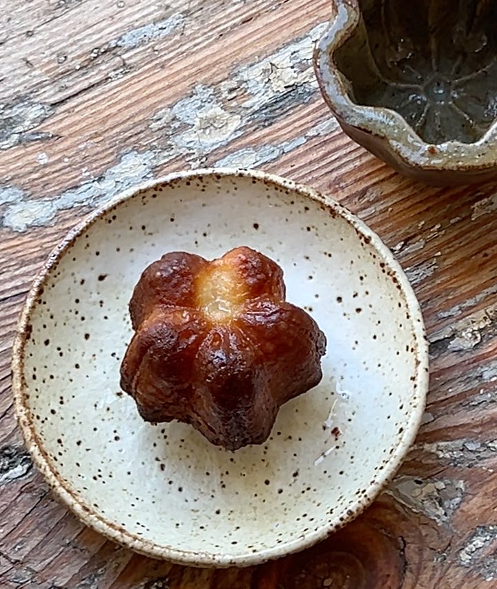 I even experimented with a single sakura-shaped wagashi mould I bought at a flea market in Japan but heating the oven to 230°C for one tiny canelés seemed excessive, and the texture wasn’t quite right either. A visually rewarding experiment nonetheless (see above).