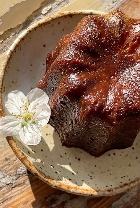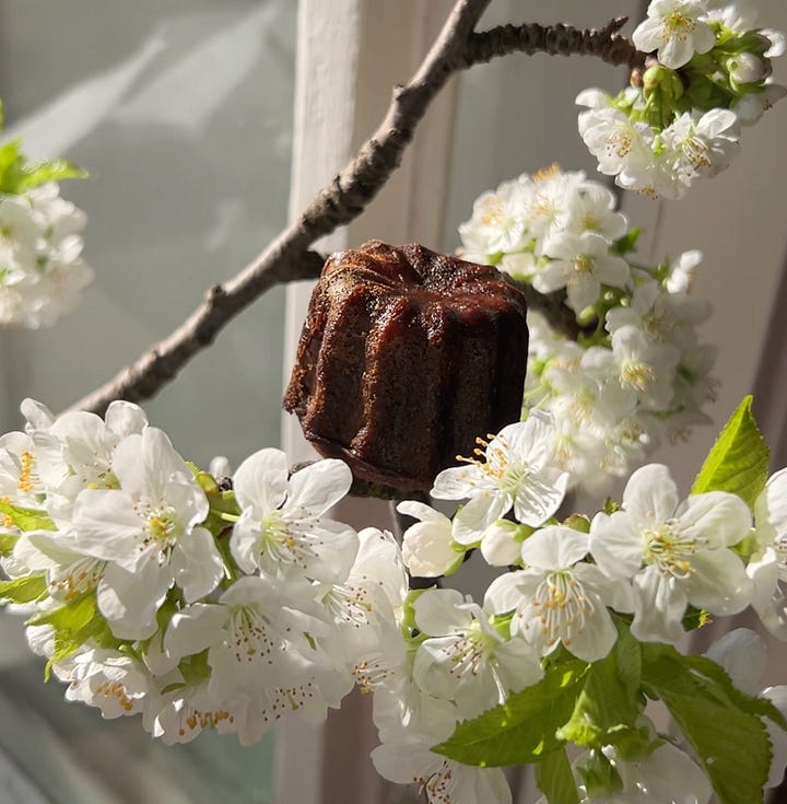 There are many desserts that require patience. But I kept coming back to canelés with their fluted, floral shape like little, bouncy buds about to bloom. I wondered what they would taste like with notes of cherry blossom, almond, magnolia.