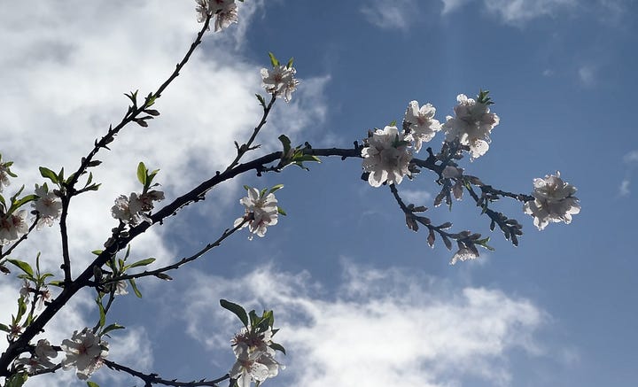 Back home, I started grasping for the spring that wasn’t yet. I caught myself hunting for the first signs of its arrival on trees, cloud-speckled skies, sun-facing faces. I meticulously tracked the growth of sprouts, celebrated every bursting leaf on my street, cheered on the crows building nests I’d never noticed for years before. I bugged flower shops for branches of cherry, sweet or sour; magnolias, bloomed or not. Anything to help me keep faith spring was, in fact, awakening soon.