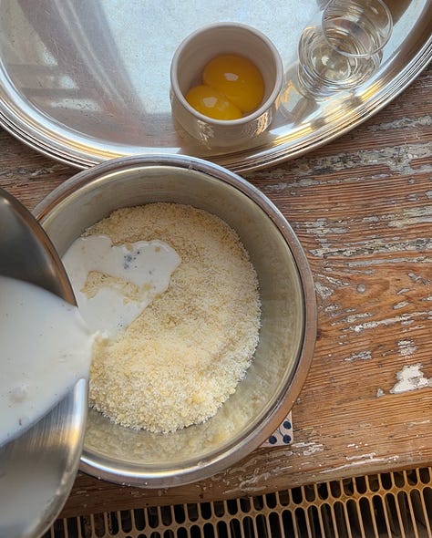 Pour warm milk into mixture a little at a time, while whisking vigorously (keeps the eggs from curdling AKA tempers them). Leave out vanilla pod.