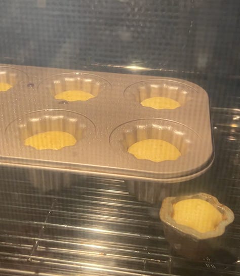 I started with Kitchen Projects’ recipe as a base (her instructions are incredible for understanding and customising a new recipe) but I knew I wanted to experiment with timings to adjust the crust. I ended up reducing the baking time by a total of 15 minutes (minus 5 at high heat, minus 10 at lower heat), and developed the perfect texture (to me): a chewy custard ‘tarte’ with a perfectly golden brown but tender crust; just barely holding its shape.
