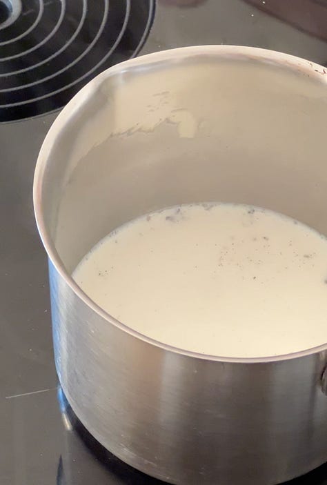Scrape half of a pod of vanilla and add to milk. Also throw in the pod.